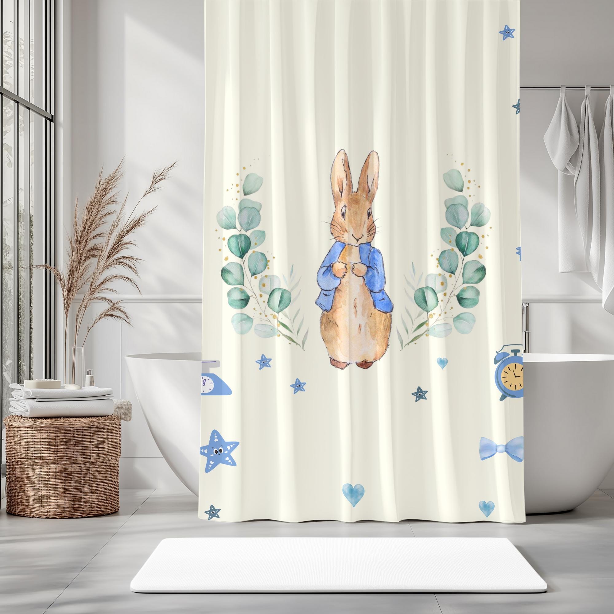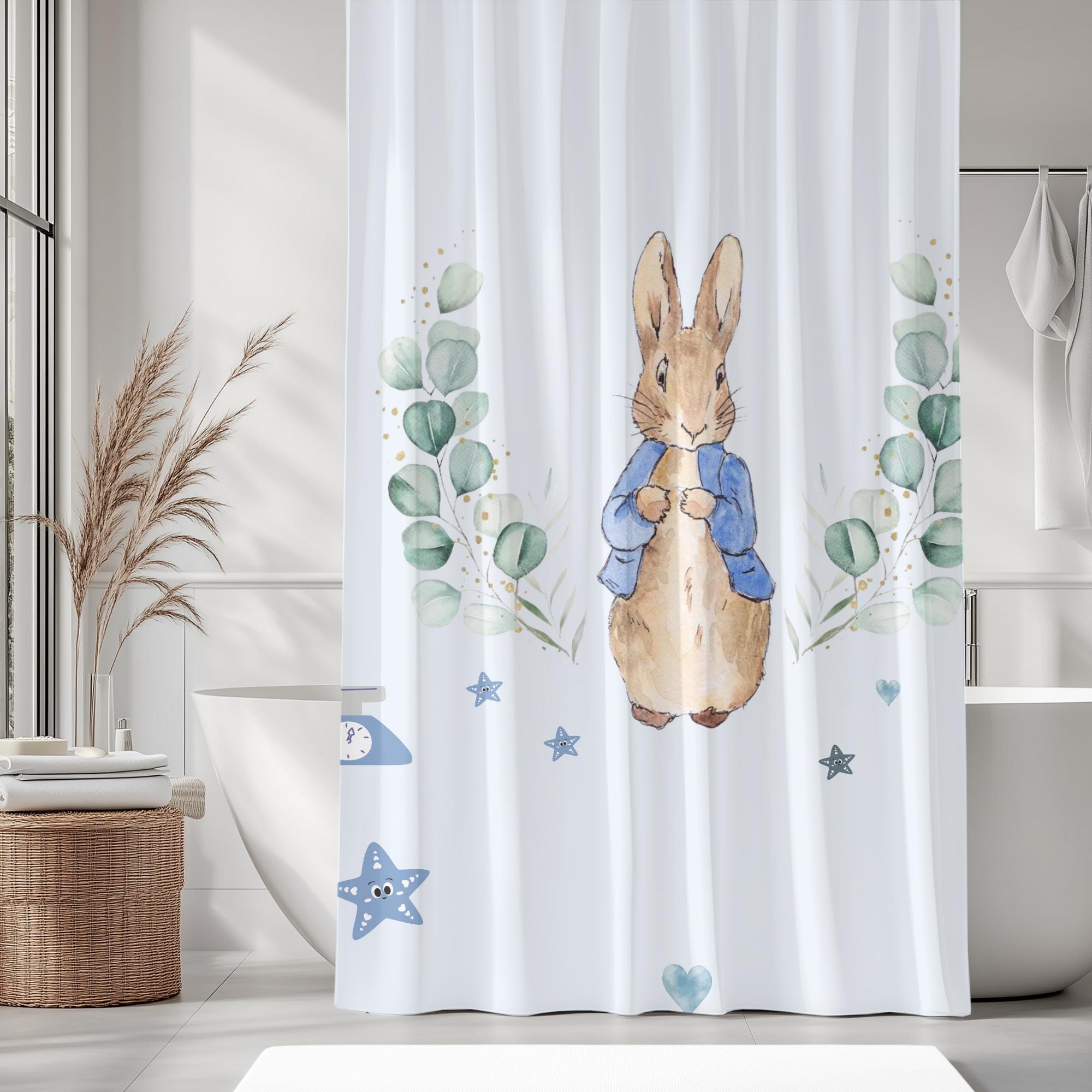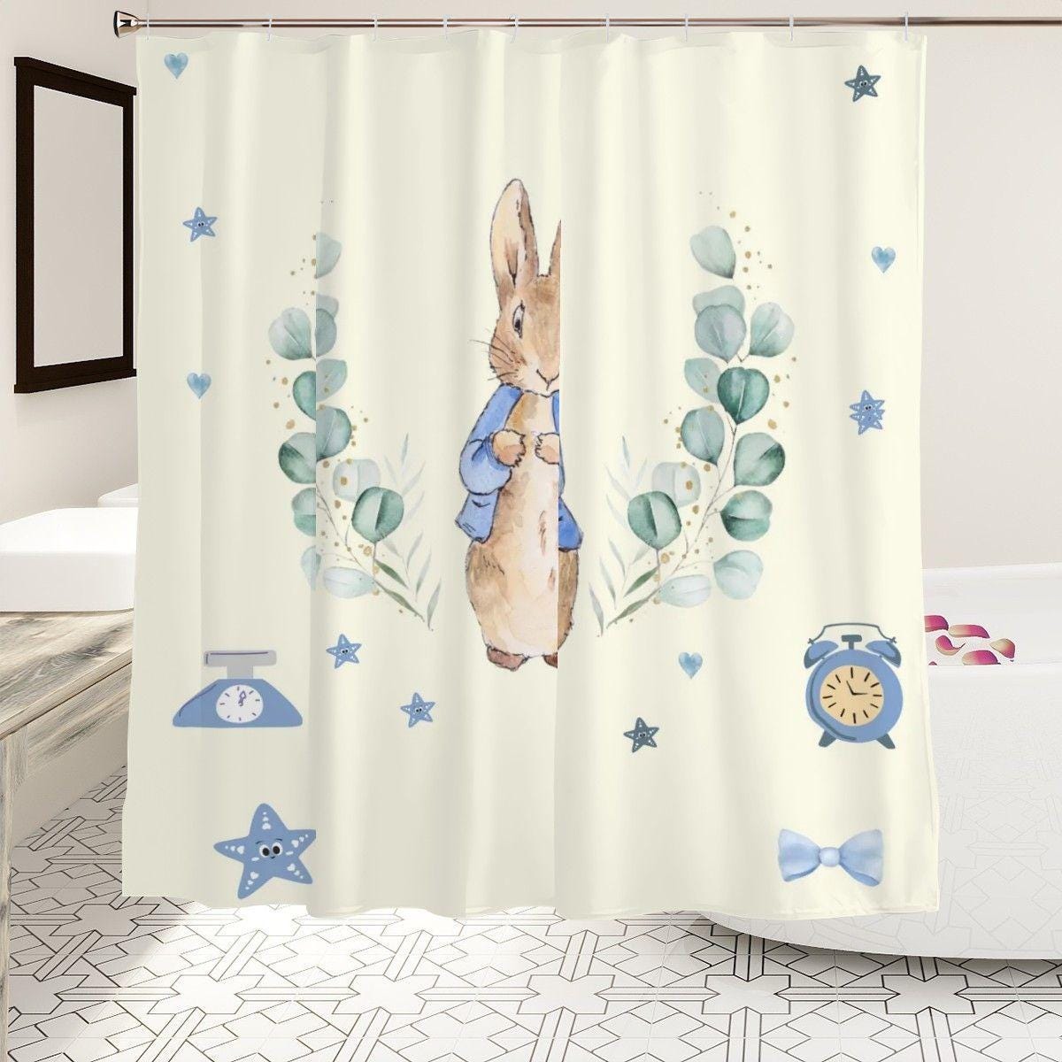 Peter Rabbit Shower Curtain – Storybook Nursery Decor, Cute Baby Bathroom Curtain Gift