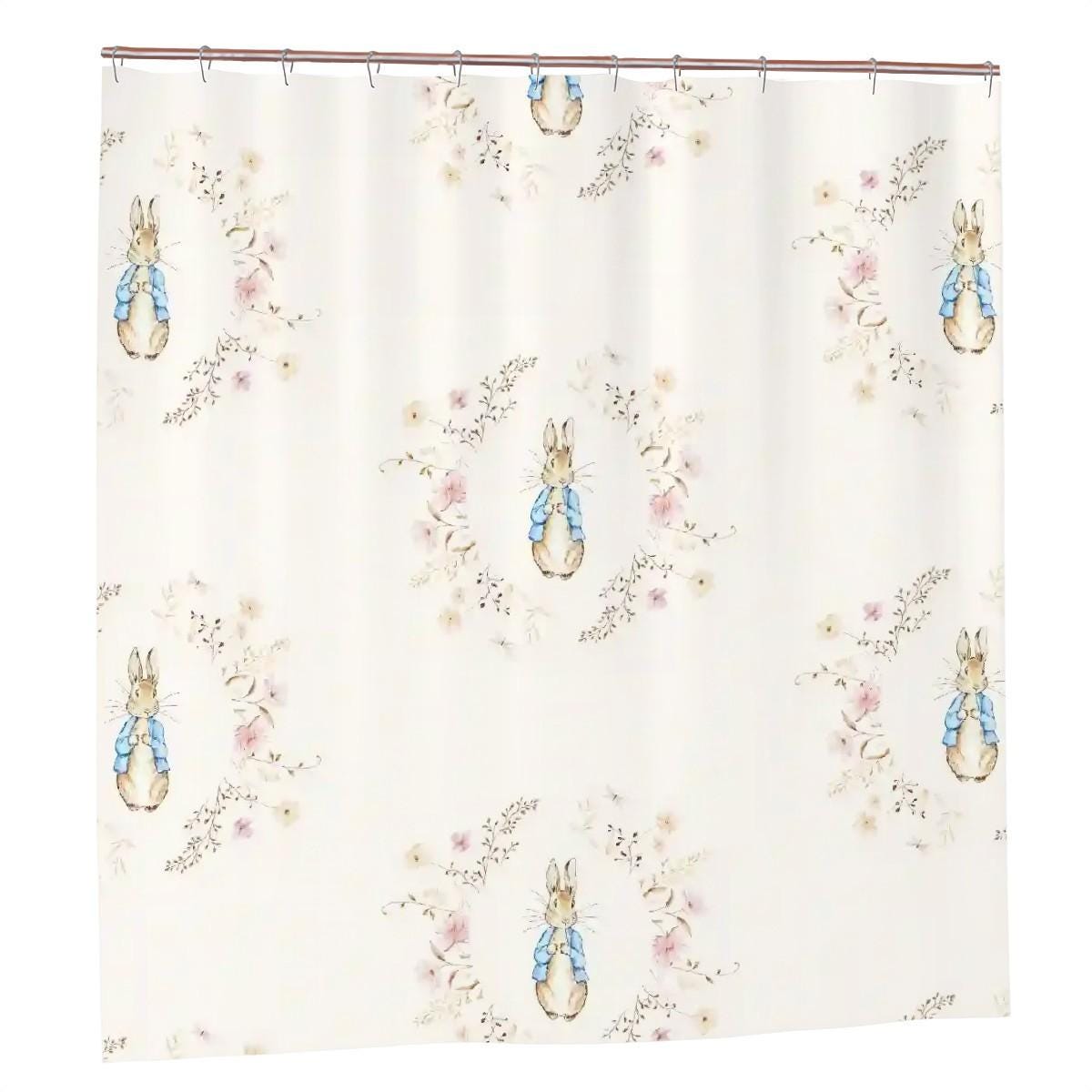 Peter Rabbit Shower Curtain – Vintage Floral Bathroom Decor for Kids, Baby, or Toddler Room
