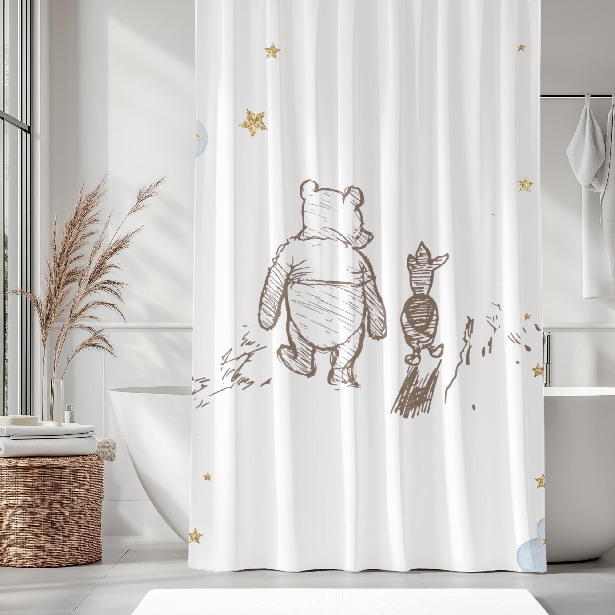 Winnie the Pooh and Piglet Shower Curtain – Cute Kids Bathroom Decor